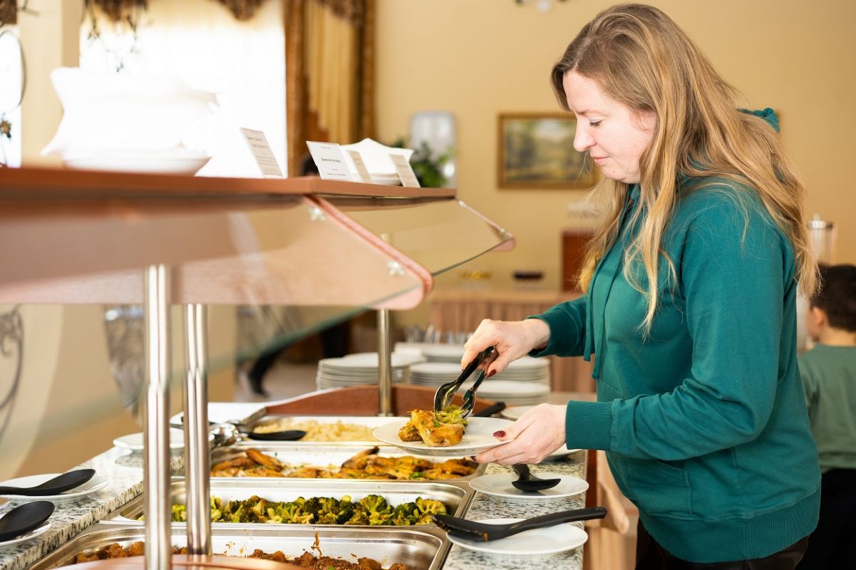 На "шведском столе" предоставляется возможность самостоятельного выбора диетических блюд в соответствии с медицинскими показаниями и рекомендациями лечащего врача. Гостям предоставляется широкий выбор блюд, учитывающих индивидуальные потребности и предпочтения.