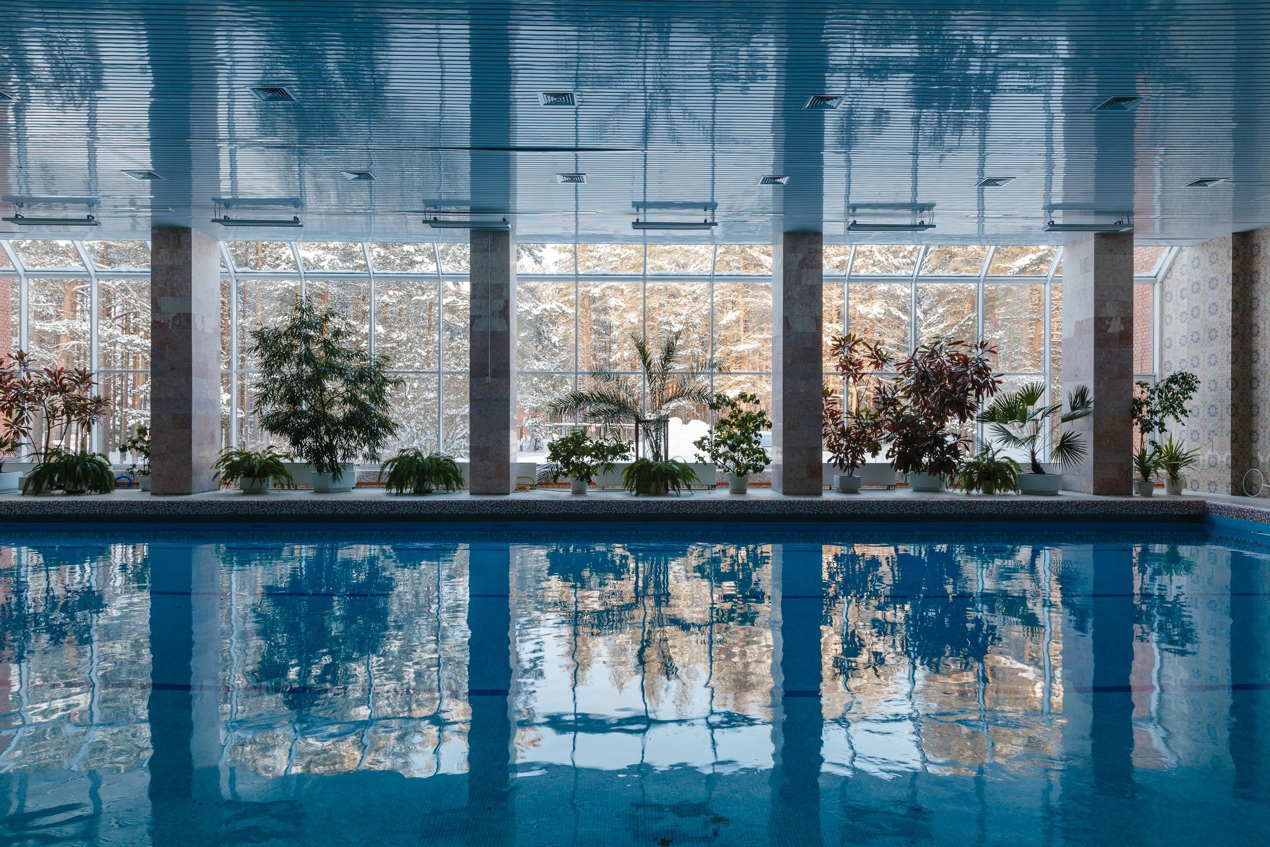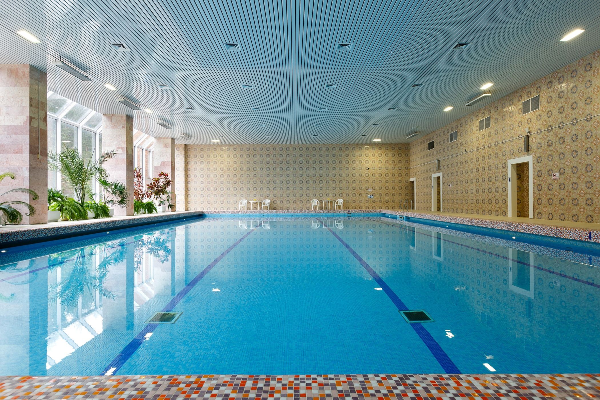 • длина бассейна - 22 м, ширина - 12.5 м, глубина - от 1.13 м до 1.51 м, температура воды - 29⁰с